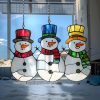Snowman 2025 Christmas Ornament – Acrylic Window Hanging Faux Stained Glass Suncatcher With Dangling Snowflakes